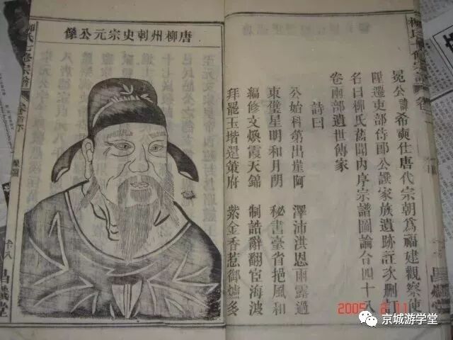 安徽泾县《泾川柳氏宗谱》(嘉庆21年)与安徽岳西《河东柳氏宗谱》(民国28年),不独有柳宗元为家谱撰写的《谱牒论》,更收入了他的画像、传记、世系等资料。据《泾川柳氏宗谱》记载:柳宗元“住万年县,居司马村,……公寿四十七,殁,归葬万年县,皆门人之力也。”